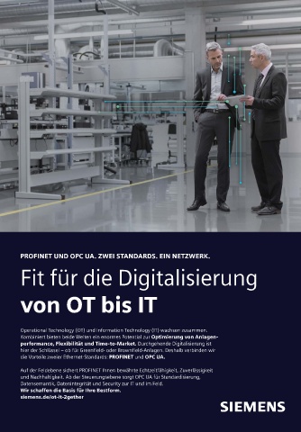 und Nachhaltigkeit. Ab der Steuerungsebene sorgt OPC UA für Standardisierung,